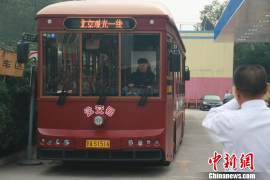 这是北京当日新开通的“城市旅游观光一线”,其首批12辆仿古“铛铛车”为纯电动空调车,车的外观、内饰都模仿1924年老北京城里的有轨电车,只是少了铁轨和车顶的“大辫子”。